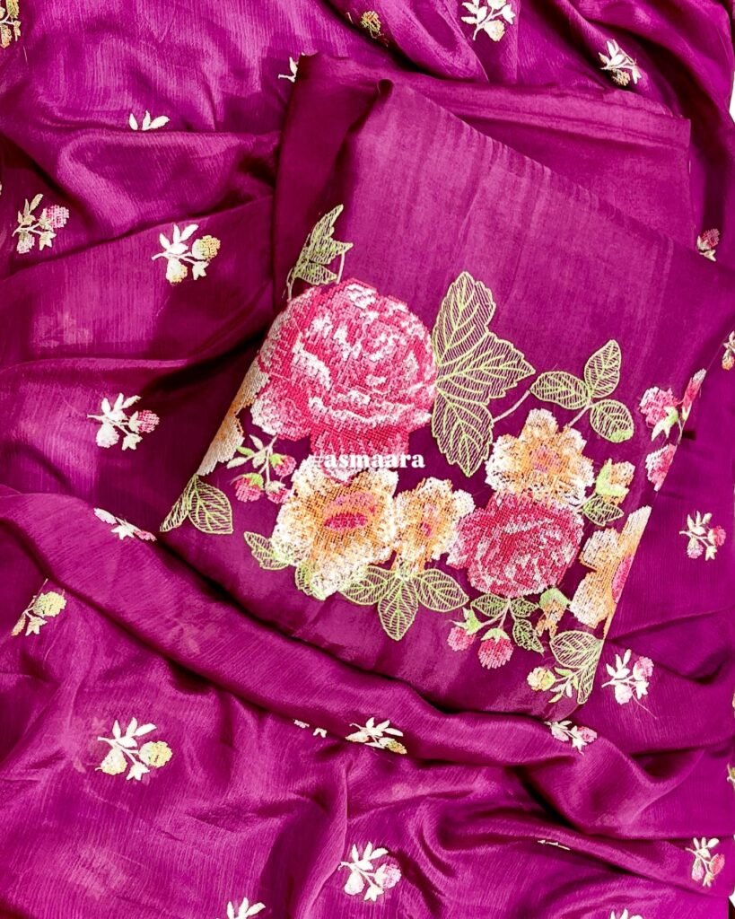 Elegant Organza Silks unstitched suits for timeless ethnic charm.
