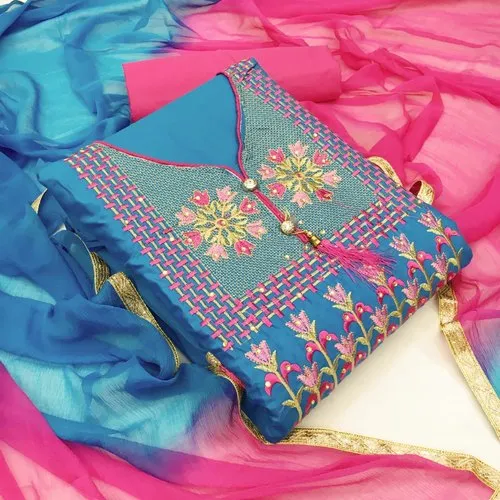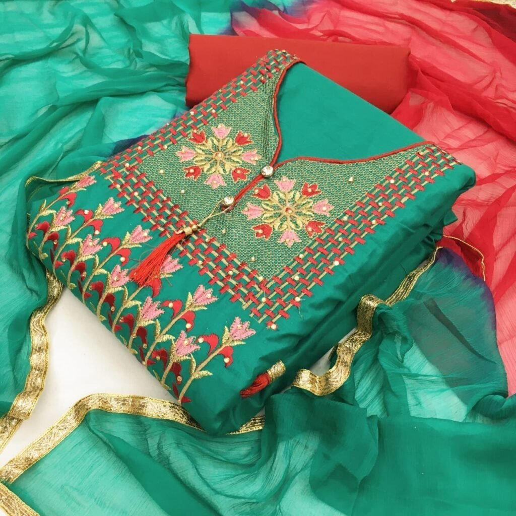 Luxurious Unstitched Cotton Silk suits for elegant ethnic wear.